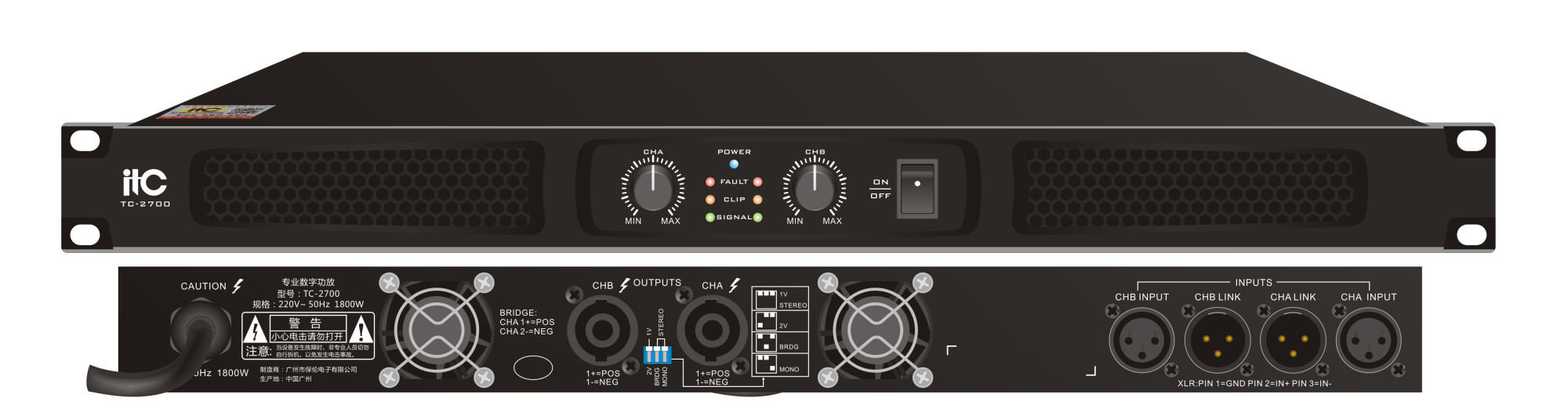 Усилитель ITC-4700  4-х канальный усилитель 4х700W / 8 Ом, 4х1200W / 4 Ом