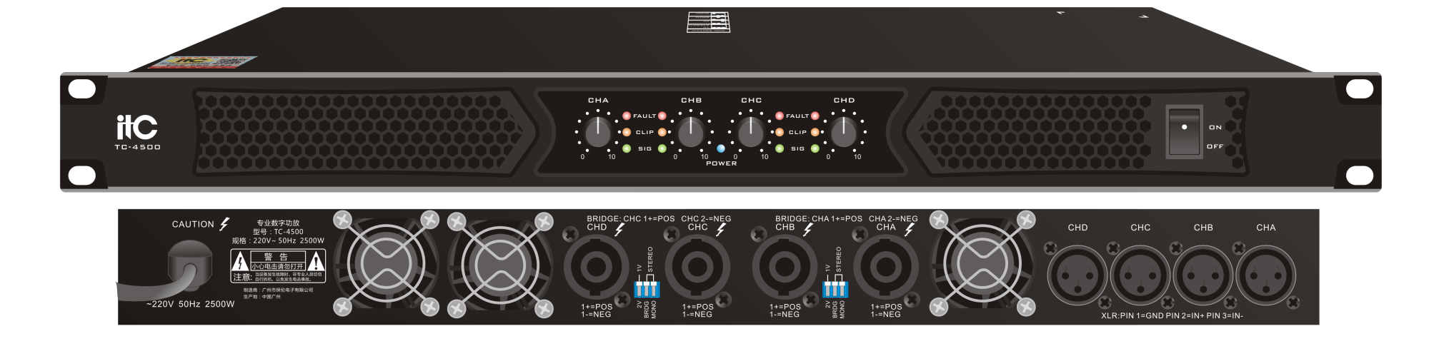 Усилитель ITC-4500  4-х канальный усилитель 4х500W / 8 Ом, 4х800W / 4 Ом